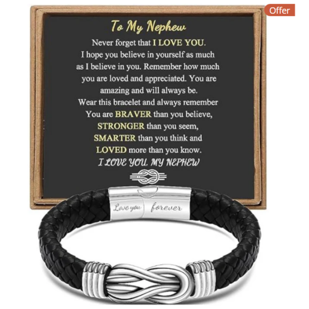 Show your nephew how much he means to you with this timeless braided leather bracelet — a symbol of strength, guidance, and the unbreakable bond between you.
